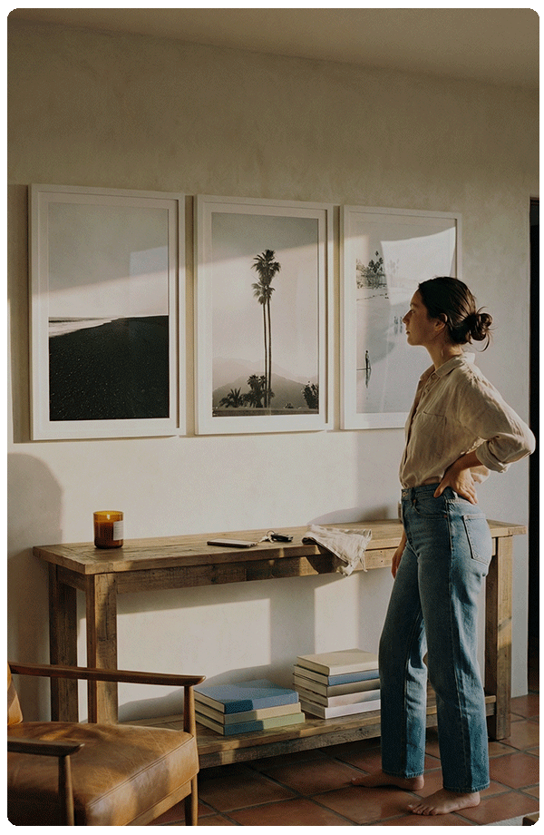 The Endless Frame® was created from a profound belief that your art should do more than hang around; it should evolve just as often as you do. Our first-of-its-kind frame allows you to update your art instantly without replacing the frame, whether you’re styling for the season, staging a room, or letting your walls grow with you. Collect more art, not more frames.