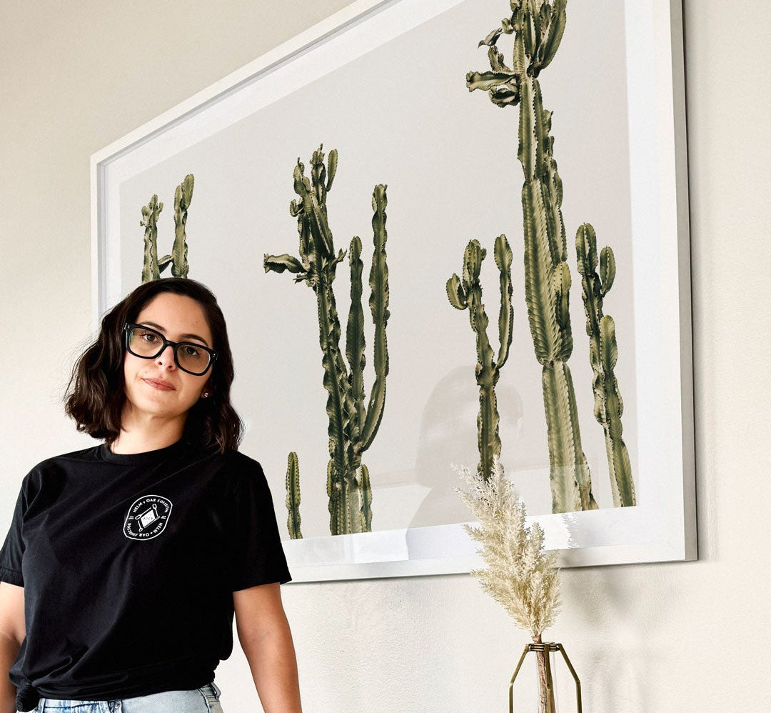 Printed with archival, Giclée-certified inks for remarkable depth and lasting beauty. Choose matted or full-bleed, then store up to three prints within a single frame; making it effortless to refresh your art as seasons and vibes change. One frame. Endless curation.